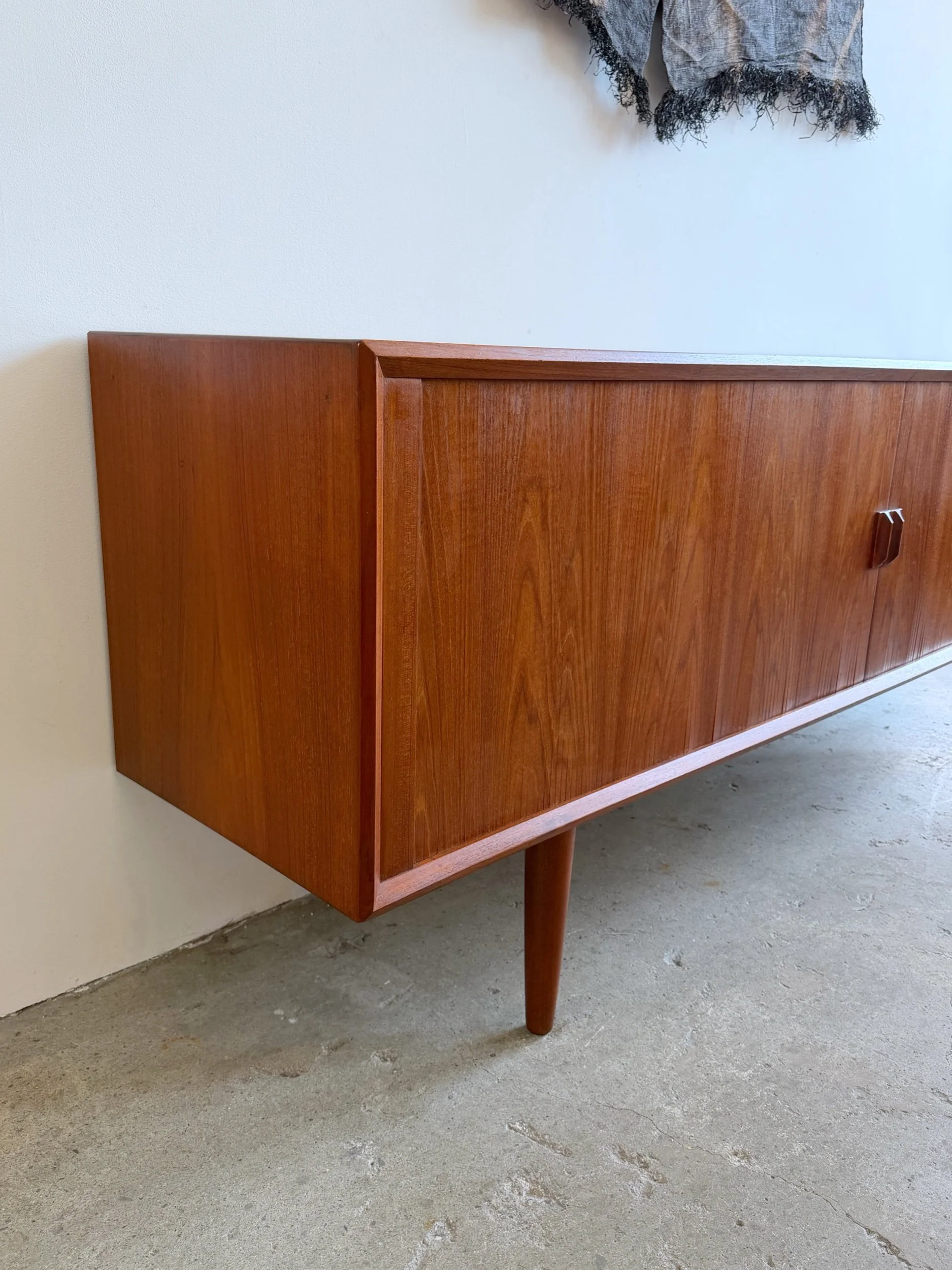 Faarup Møbelfabrik was a Danish manufacturer known for producing teak furniture in the mid-20th century, including credenzas, cabinets, and wall units for both domestic and export markets.